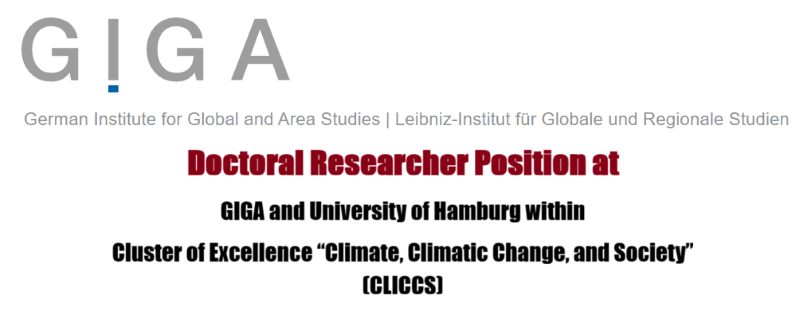 Doctoral Researcher Position at GIGA and University of Hamburg within the Cluster of Excellence “Climate, Climatic Change, and Society” (CLICCS)